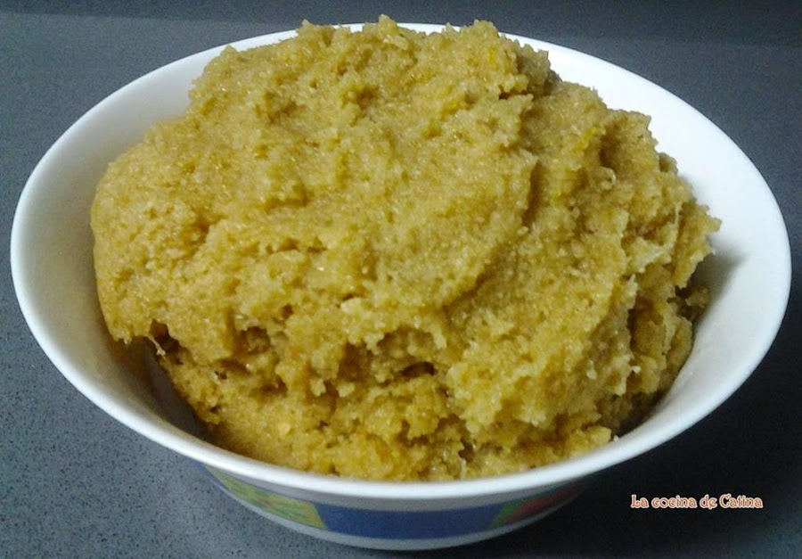 Poner todos los ingredientes en un barreño, mezclarlos muy bien, y dejar la masa que repose al menos una hora, para que la almendra se empape bien del resto de ingredientes.