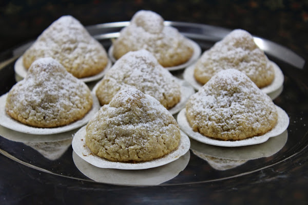 En frío, espolvorear con azúcar glas. Si los hacéis sobre oblea, recortarla, que yo la dejaba puesta,jeje.