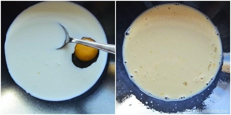 Por otra parte mezclamos los elementos líquidos, leche, miel, y el huevo, mezclamos. Ahora poco a poco vamos mezclando estas dos mezclas valga la redundancia, lo hacemos hasta formar una masa bien densa pero homogénea con una densidad de caída lenta, aquí podemos ir regulando con un poco más de leche la densidad de la masa.