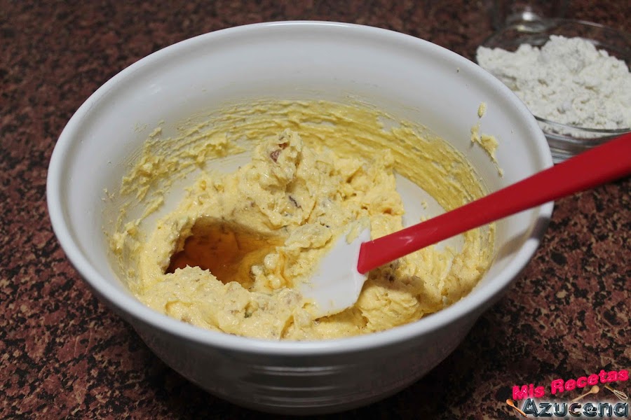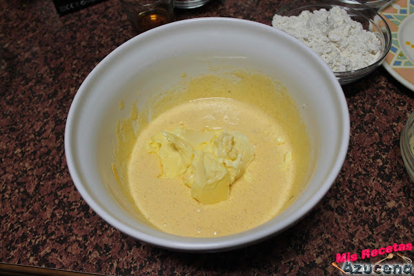 Ahora continuamos añadiendo la mantequilla, volvemos a mezclar.