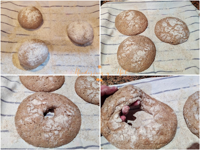 Pon las coronas sobre papel en la bandeja de horno, y espolvorea un poco de harina de centeno por encima.