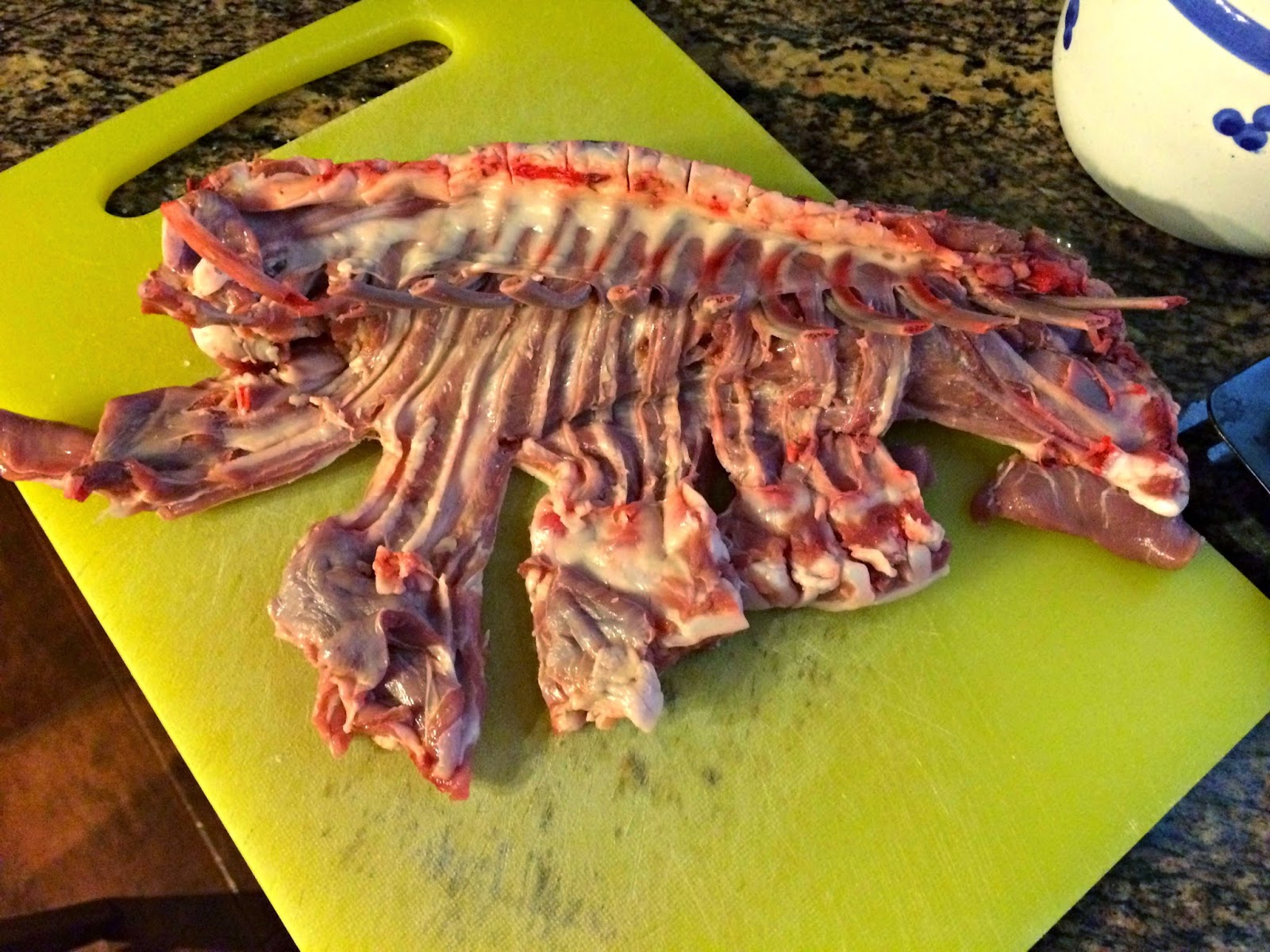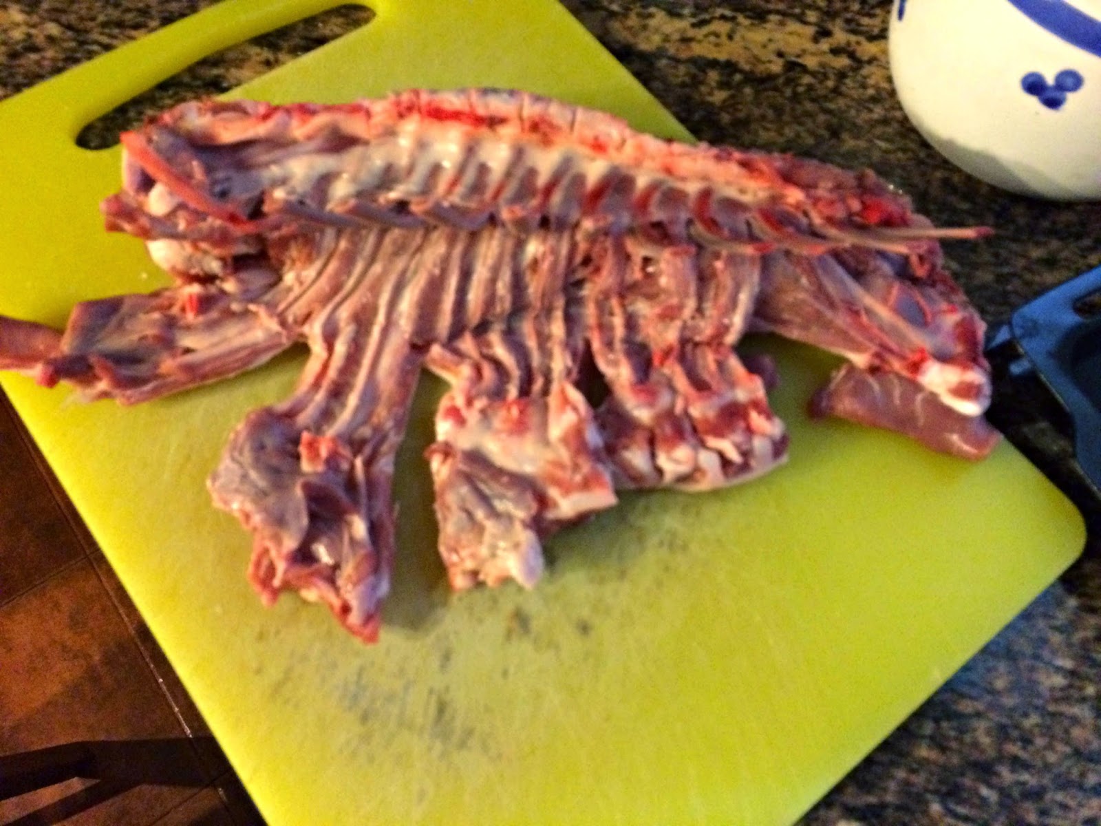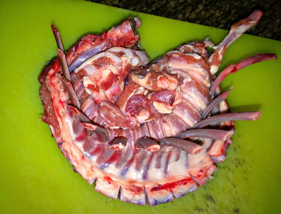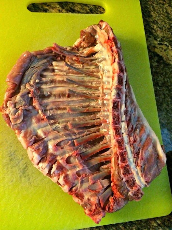 Como veis el costillar es pequeñito, pero para enseñaros la receta sirve perfectamente. El carnicero lo que hace es romper los huesos de las costillas para poder separarlos de la carne y la ternilla. Con cuidado vamos a ir limpiando la carne que rodea los palos y dejarlos completamente limpios, y separados de la falda.