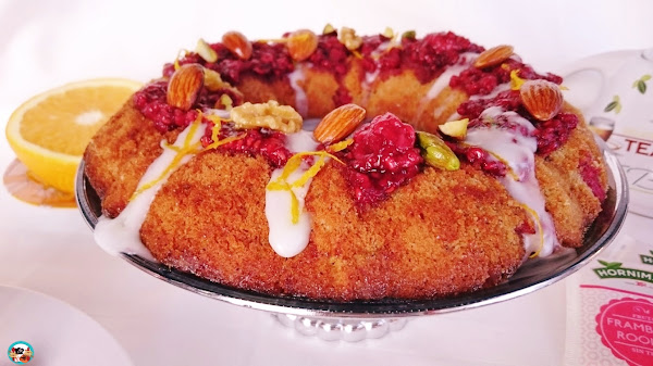 Espero que disfrutéis con esta dulcísima corona de frambuesas con frutos secos y aroma de naranja.Con un sabor único y especial y una presentación delicada...En la misma linea también os recomiendo: ( corona de naranja y zanahoria) y ( corona de harina de maíz)