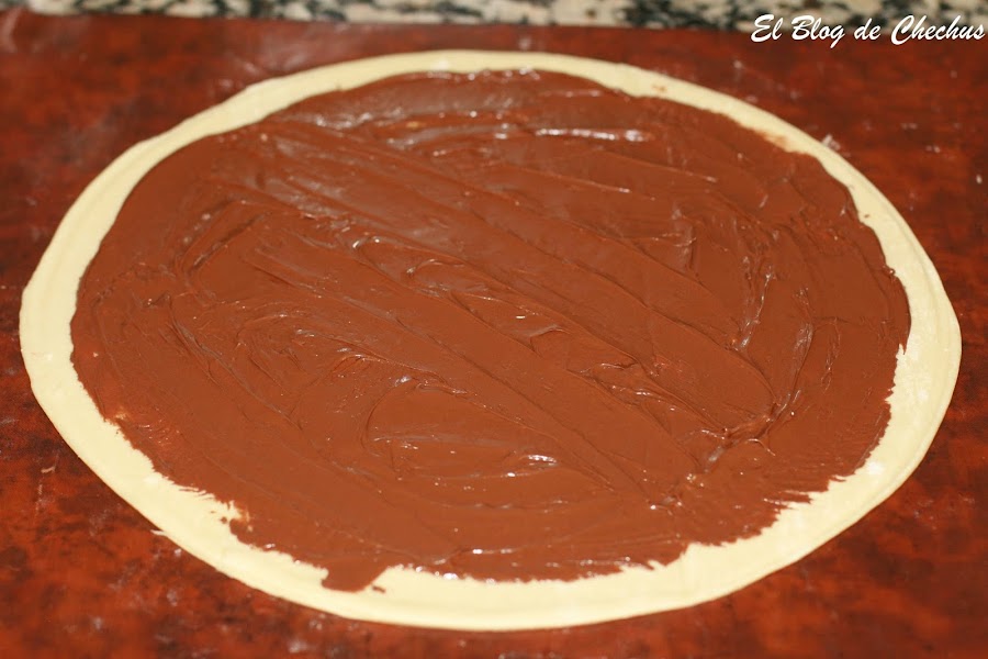 Ya tenemos nuestra perfecta corona de chocolate, pero también puedes rellenarlo de salado, como sobrasada, queso de untar... Riquísimo!!!!