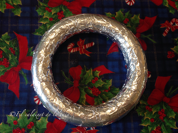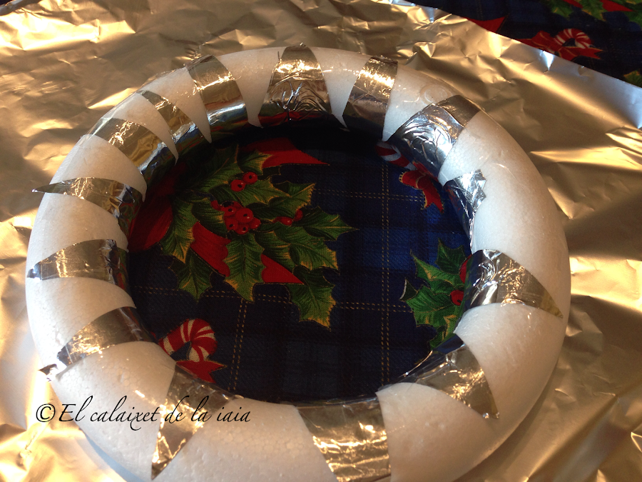 Si forramos con servilleta, hacemos el círculo interior y practicamos cortes como veremos más abajo con el papel de plata