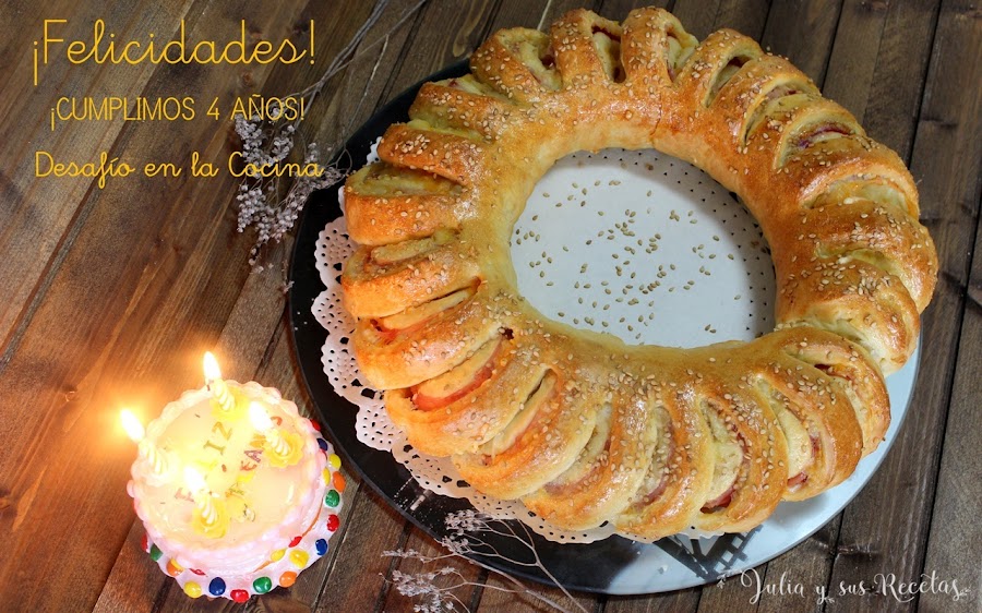 ¡Y hay que celebrarlos!, para ello Rocío, nuestra desafiadora de este mes nos han propuesto hacer una Corona rellena salada.