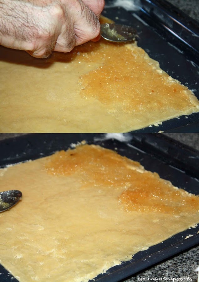 Extendemos la cidra sobre la masa y cubrimos con el resto de la masa también estirada.
