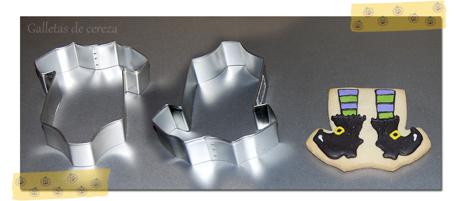 Calavera: al revés nos sale una calabaza con alguien asomando. En este caso Hello Kitty, pero podría ser cualquier personaje que os guste. Este cortador es más grande que los que suelo utilizar y las dos galletas que horneé se me partieron, así que habría que hacer las galletas más gorditas (eran de 6mm).