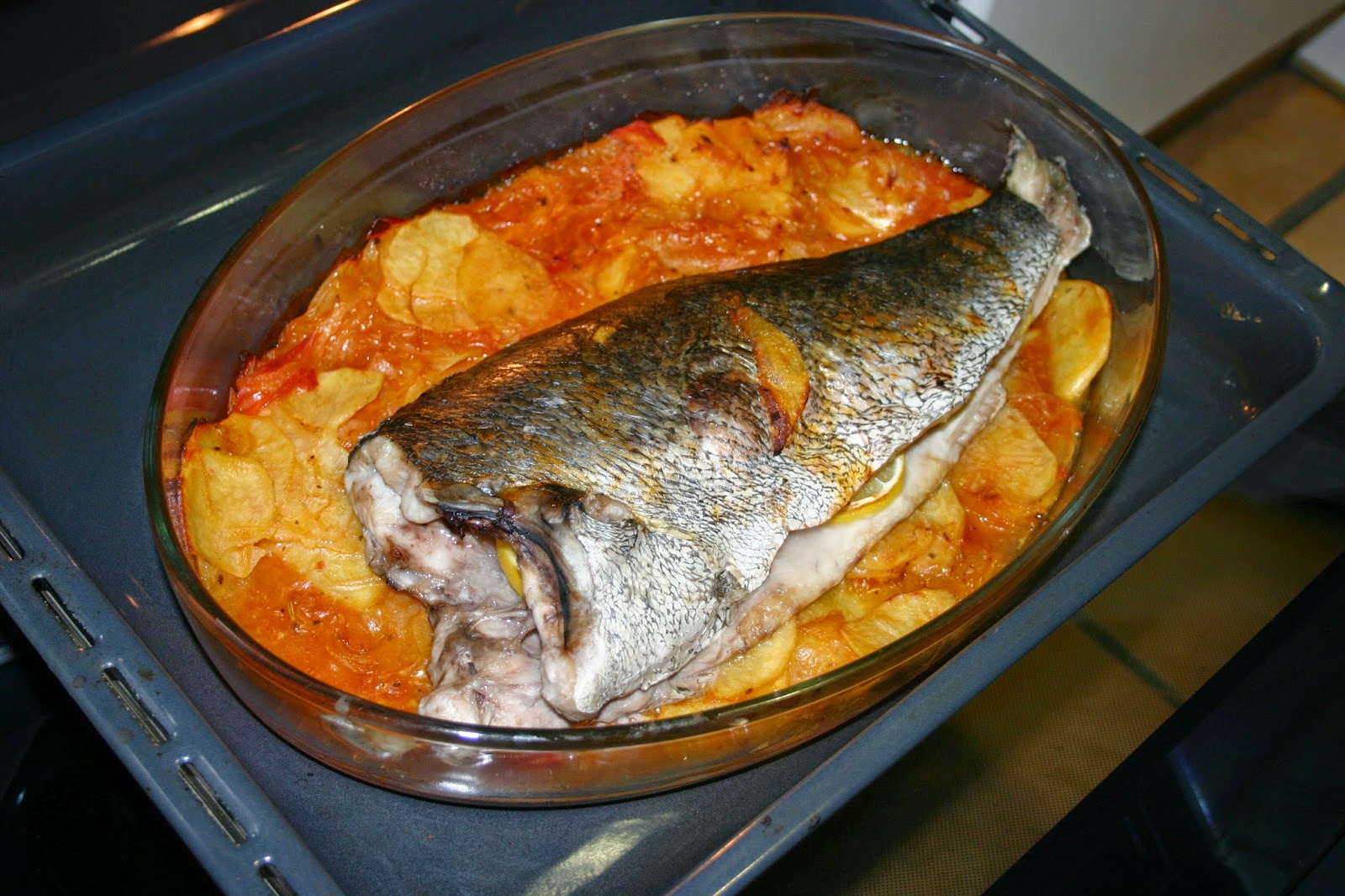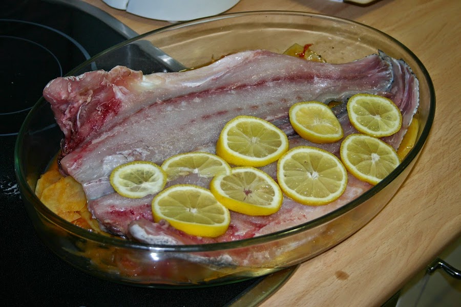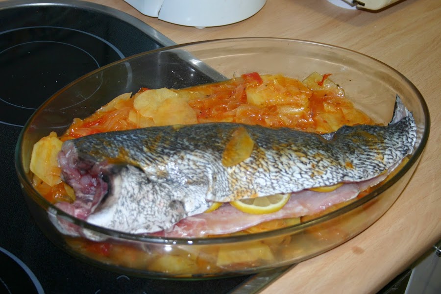 y lo meteis al horno a 180º de temperatura, unos 18 minutos mas o menos, dependera de como sea vuestro horno y de como os guste el punto del pescado