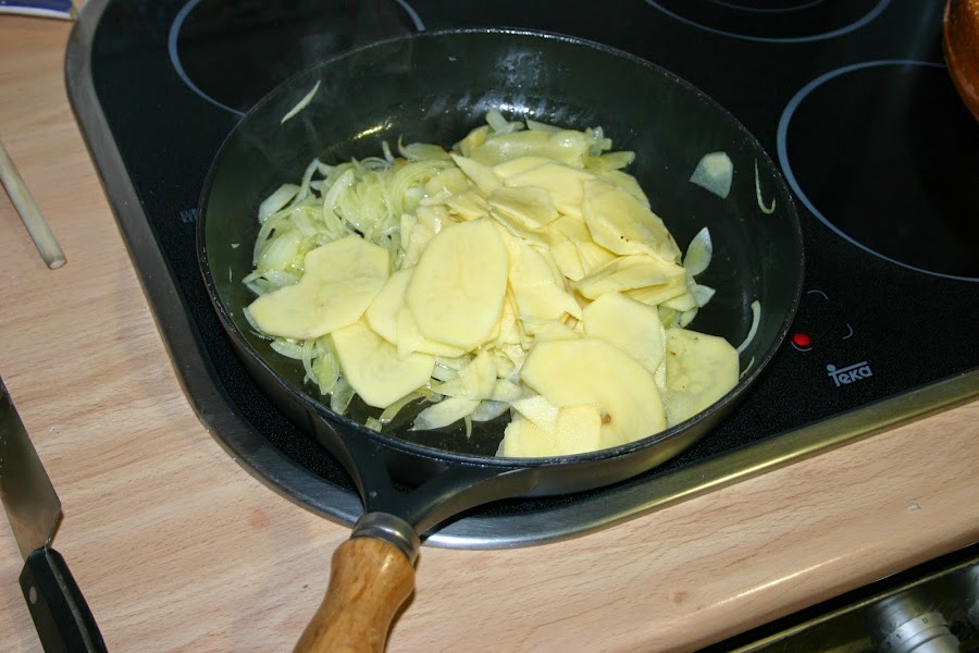 las echais a las sarten y las sofreis junto con la cebolla