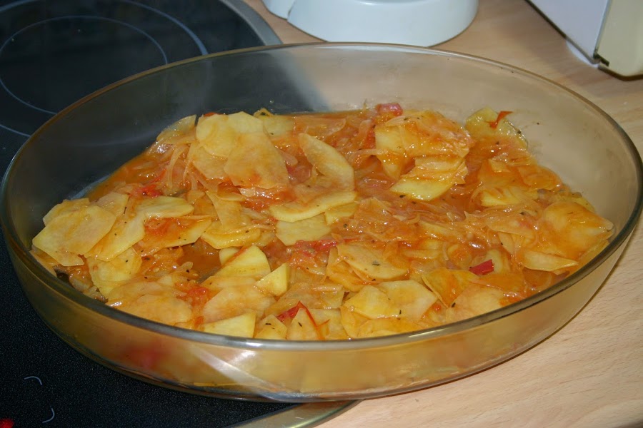 cuando la patata este hecha, la poneis en una fuente de horno