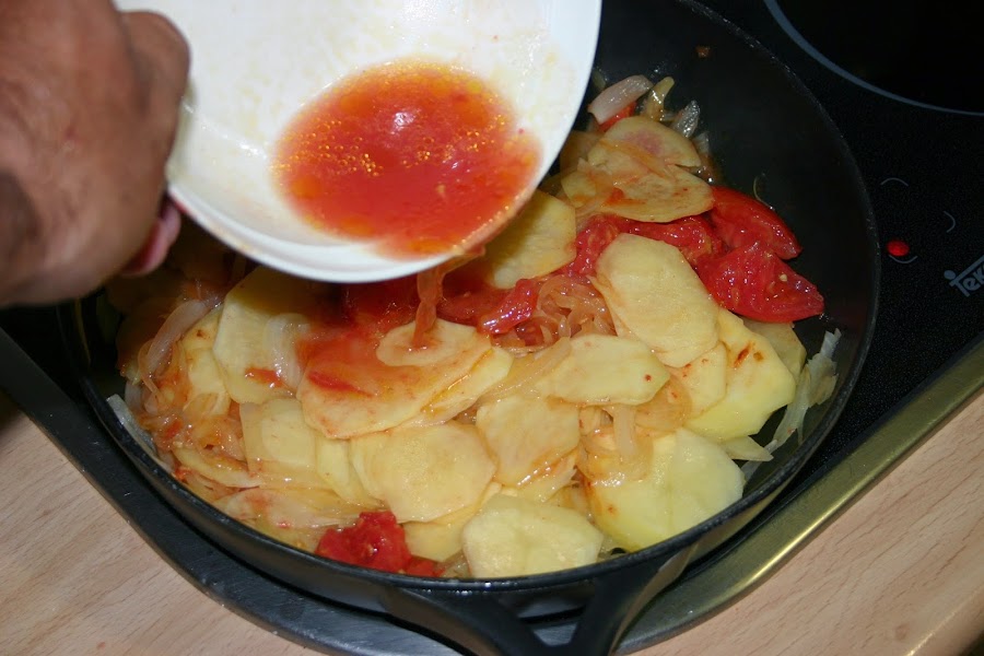 la eche en el sofrito, si vosotros no teneis ensalada de tomate, picais los tomates y los echais, no hay mayor problema