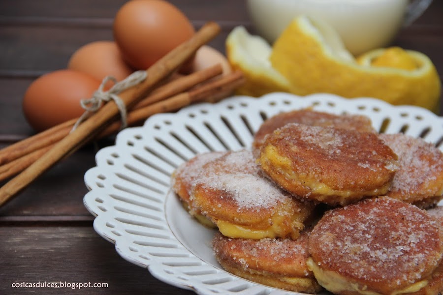 Torrijas de yema tostada: Si las torrijas ya son deliciosas, imaginadlas con una capa de yema tostada espolvoreada de azúcar moreno ¡Irresistibles!