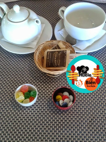 Para terminar una infusión, que nos sirvieron con algunas gominolas. Algo nuevo para nosotras, era la primera vez que nos servían la infusión con chuches... Un detalle curioso.