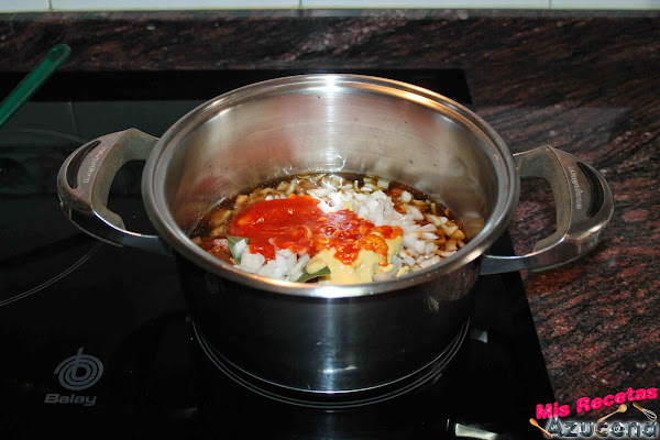 Mientras se hacen las costillas pondremos una olla o cazo al fuego con todos los ingredientes de la salsa, removemos todo y dejamos al fuego hasta que empiece a hervir, después apartamos y reservamos.