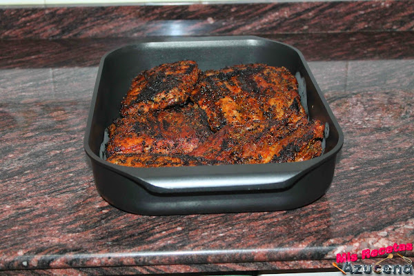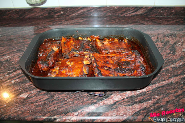 Bueno, a lo que voy, que es a la receta, supongo que habréis probado varias recetas de costillas a la barbacoa, es más yo tengo otra receta subida al blog, pero desde luego no están como estas, ojo, que las otras están muy buenas, pero se preparan otra forma. Lo que pasa es que preparadas de este modo, como en esta receta.... quedan supertiernas y muy sabrosas, yo os las aconsejo, no os van a defraudar. Si que es cierto que tienen muchos y ingredientes, y que por eso ya paracen complicadas, pero no lo son, es simplemente añadir y hacer.... en casa nos encantan, son nuestras favoritas, que no os de miedo la receta que es muy fácil.