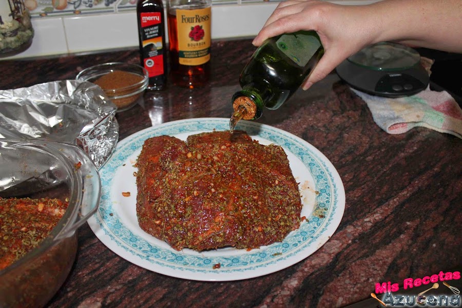En un bol pondremos todos los ingredientes del adobo, mezclaremos bien y cogemos los trozos de la costilla y le untaremos el adobo bien por todos sitios, una vez tengamos todos los trozos de costilla adobados taparemos con papel de aluminio y lo dejaremos reposar en la nevera al menos durante 2 horas.