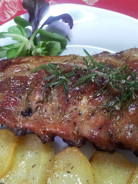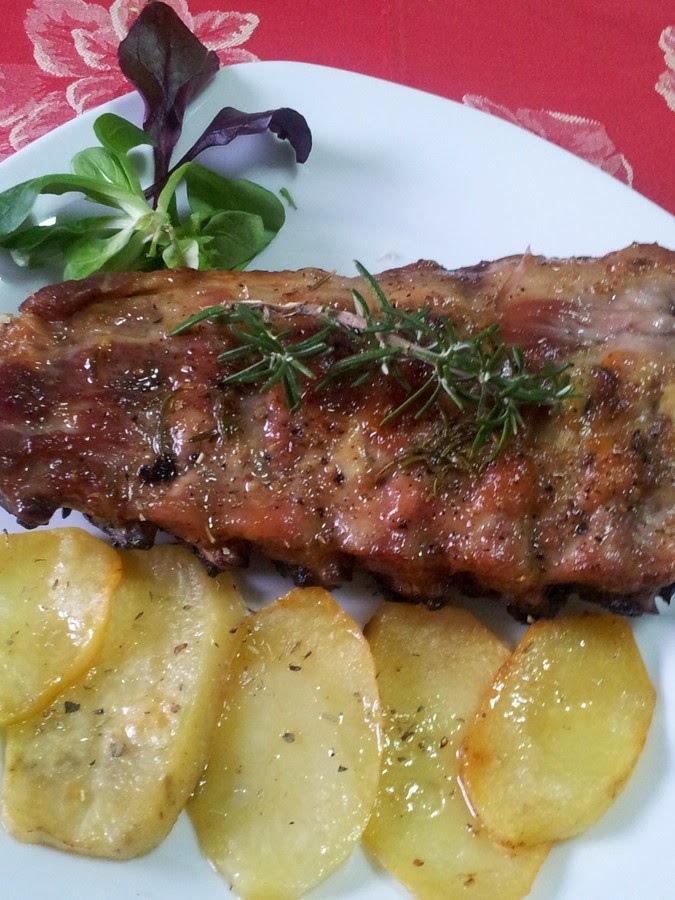 Tengo, que deciros, que en mi casa, las costillas al horno, es como más les gustan, así que de vez en cuando voy cambiando los ingredientes y esta en particular, a parte de ser muy sencilla como casi todas mis recetas, la miel y el romero le dan un toque muy rico a la carne.