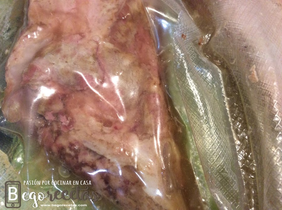 Una vez preparadas las bolsas y el agua a su temperatura las sumergimos en el recipiente. Cocinamos durante 24 horas.