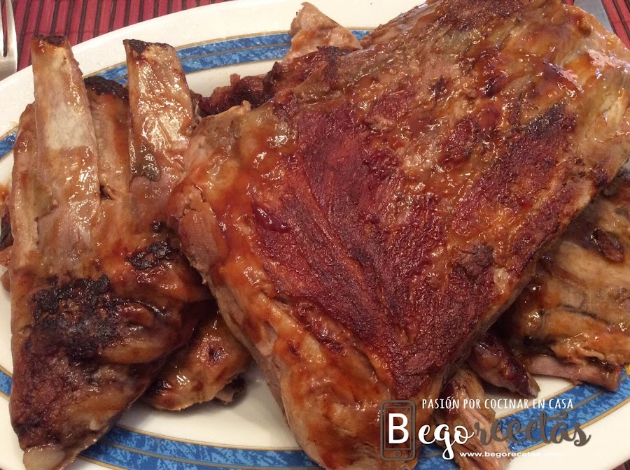 Hoy os traigo estas sabrosas costillas de cerdo con salsa barbacoa. Tan tiernas que la carne se desprende sola del hueso, y con tan buen resultado al pasarlas al final por la plancha que ya me han pedido que para este sábado lleve un costillar completo a una barbacoa nocturna.