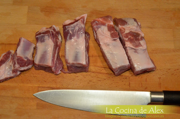 PREPARACIÓN:Lo primero que tenemos que preparar es el macerado de las costillas, para esto vamos a cortar las costillas (sino vienen ya cortadas) separandolas por huesos individuales.