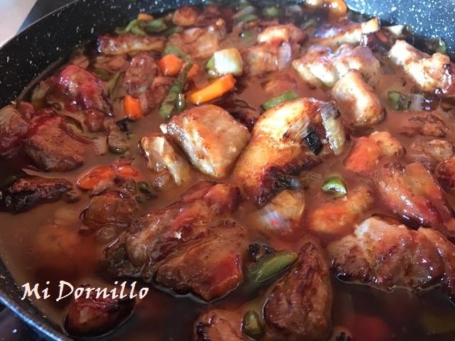 Mezclamos las costillas con la salsa y verdura y cocemos unos minutos y listo.