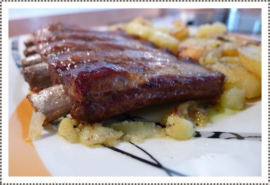 la receta de estas costillas estan sacadas de lazy blog:http://www.lazyblog.net/2010/05/costillas-al-horno-en-media-hora.html. su nombre original son ademas en media hora,pero como a mi me llevo bien una horita de horno, pues ahi lo dejamos.