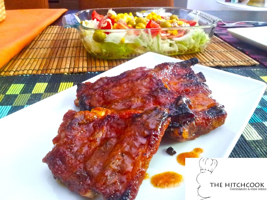 Bueno, bueno, bueno... Uno llega al mercado, ve un costillar de oferta, no puede resistir la tentación, lo compra y luego se plantea la cruzada de intentar fusilar platos devorados en steakhouses y demás chiringos de corte americano. Tenía ya ganas de probarme a hacer una salsa barbacoa casera y ésta era la ocasión ideal. Tras mucho leer, mirar y hacer acopio de ideas y sugerencias hice un poco una mezcla de toda la información que me iba haciendo salivar por momentos. Es un proceso algo largo pero aseguro que el resultado es para chuparse los dedos... Sí, literal y metafóricamente hablando. Para días con más prisas se puede sustituir con clásicas salsas tipo Hunt"s o Jack Daniels (bastante buenas, por cierto) pero habiendo tiempo, ganas y hambre de aprender, lo mejor es pringarse hasta el fondo... Esto arranca ya.