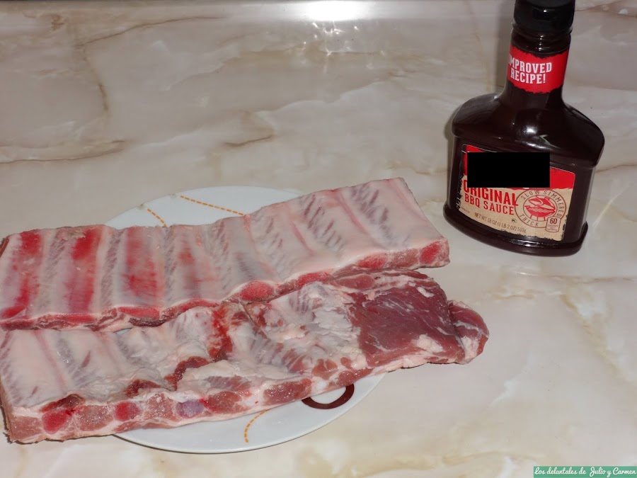 Las sacamos del envoltorio y las colocamos en una fuente. Untaremos la salsa con un pincel sobre una de las caras de las costillas.