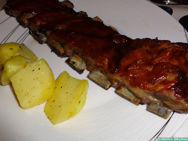 Subimos el horno a 190º y metemos la fuente con las costillas.