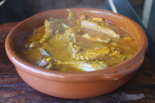 Calentamos un generoso chorro de aceite de oliva en una cazuela de barro a fuego medio.