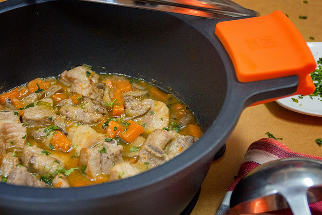 El plato que hoy os traigo es una adaptación a una receta tradicional catalana que se hace con costillas y calabaza. Yo he añadido las setas por que me encantan y creo que combinan perfectamente con ambos productos, dándole un toque fantástico. Se puede utilizar un caldo casero, pero ya sabéis que para estos casos yo no me suelo complicar la vida y compro un buen caldo y en este caso he usado el caldo natural de puchero Aneto, que queda de lujo y me ahorra mucho tiempo. Os dejo un pequeño Gif animado para que veáis lo fácil que es esta receta.
