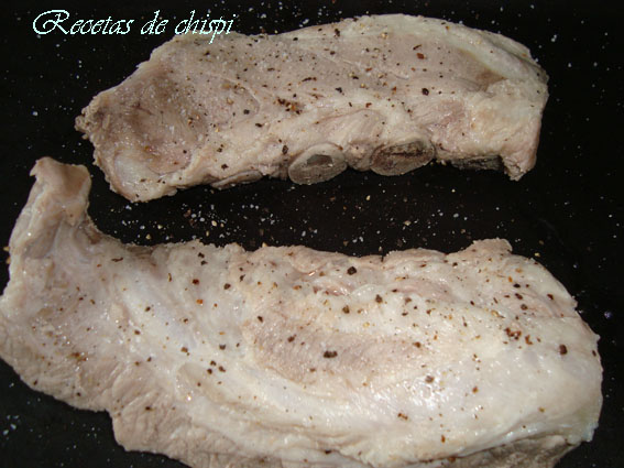 Cocer la costilla en abundante agua hirviendo durante 10 minutos, sacar y salpimentar por las dos caras.