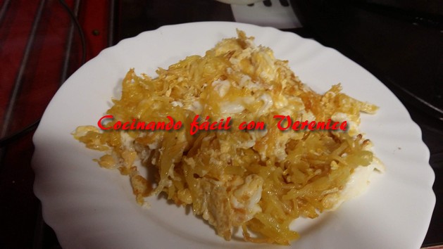 Separé patatas para varias personas y en la freidora con el aceite que había sobrado de freírlas les incorporé un huevo por persona.