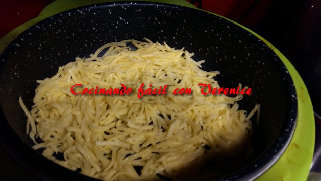 Coloqué el accesorio de las patatas paja en el procesador y en varios minutos las tenía todas listas para pasar por la freidora.