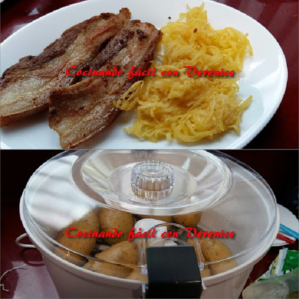Como he dicho al principio, tuve que poner una tanda en el horno para poder freír las patatas y que no se enfriaran las costillas ya hechas.