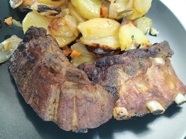 Hoy me paso a dejaros una receta deliciosa, me encantan las costillas al horno con patatas!!