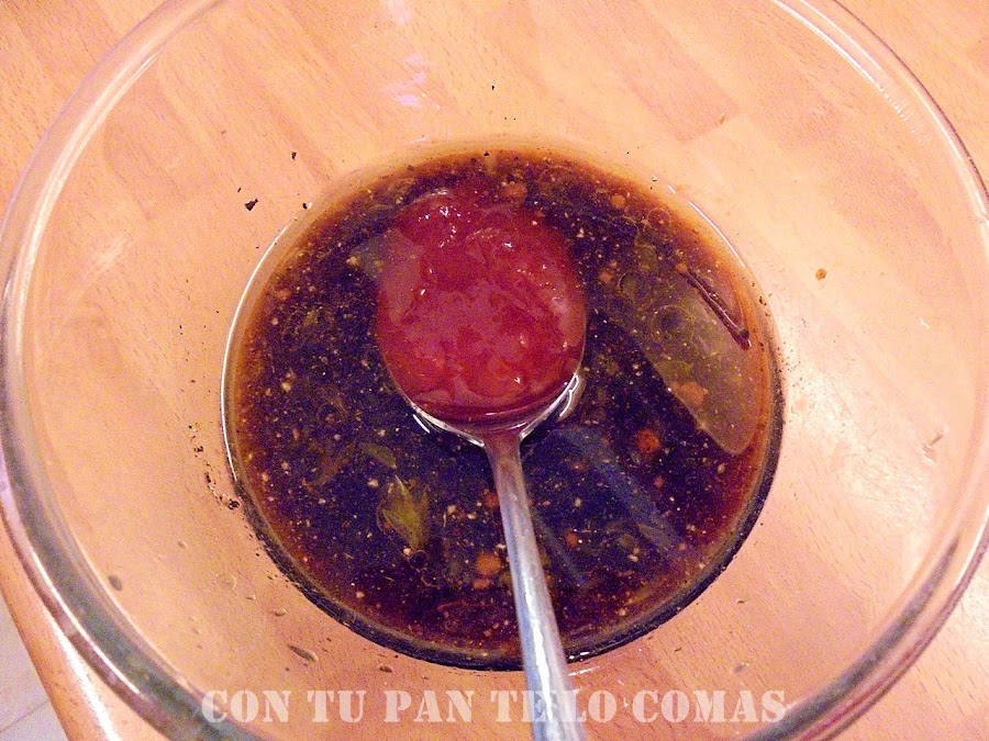 4. Pasado el tiempo del adobo las escurrimos y las ponemos en una fuente de horno guardando el líquido para hacer la salsa.