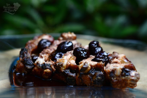 Hola a todos... Hoy os traigo una maravillosas costillas de cerdo de mis proveedores habituales de carne online, mis amigos de Masmit, las he acompañado, aprovechando la temporada de picotas uhmmmm, con una salsa con esta maravillosa fruta en vino moscatel, que ha quedado estupenda, la combinación de sabores no puede estar mas rica!! Aquí os va...