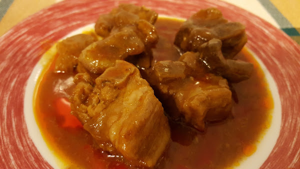 Mirando el fondo de congelador, estaba dando vueltas y vueltas pensando en que iba a hacer de comer. Al fondo de uno de los estantes había un tuper que despertó mi curiosidad, porque ya lo había dejado de lado unas cuántas veces, por no saber lo que había dentro. Así que lo descongelé y eran unas costillas de cerdo a trozos.