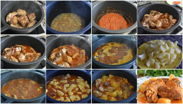 Elaboración de las costillas de cerdo guisadas con patatas: