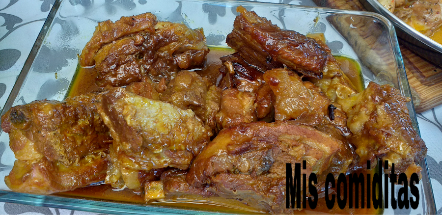 Podéis darle calor en el horno a temperatura bajita, ya que ya están cocinadas, o meterlas al micro, junto con su salsita que está para rechupetear. La carne queda jugosa y con mucho sabor,el tamaño de las costillas es el que cada cual quiera darle, yo las puse en trozos grandes para poder comerlas perfectamente sin tener que "escarbar" mucho, además se desprende perfectamente del hueso, no se necesita ni cuchillo.