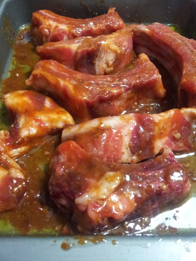 Cubrimos las costillas con la preparación anterior y dejamos marinar por un par de horas.