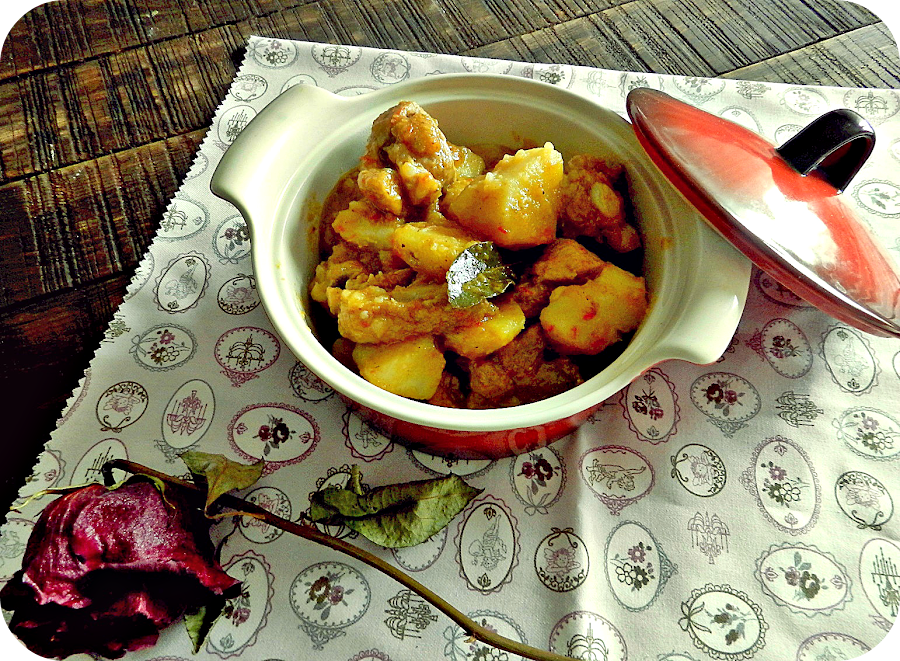 Cuando el agua hierva dejamos cocinar todo junto a fuego lento unos 25-30 minutitos aproximadamente hasta que estén tanto las patatas como la carne tiernas.
