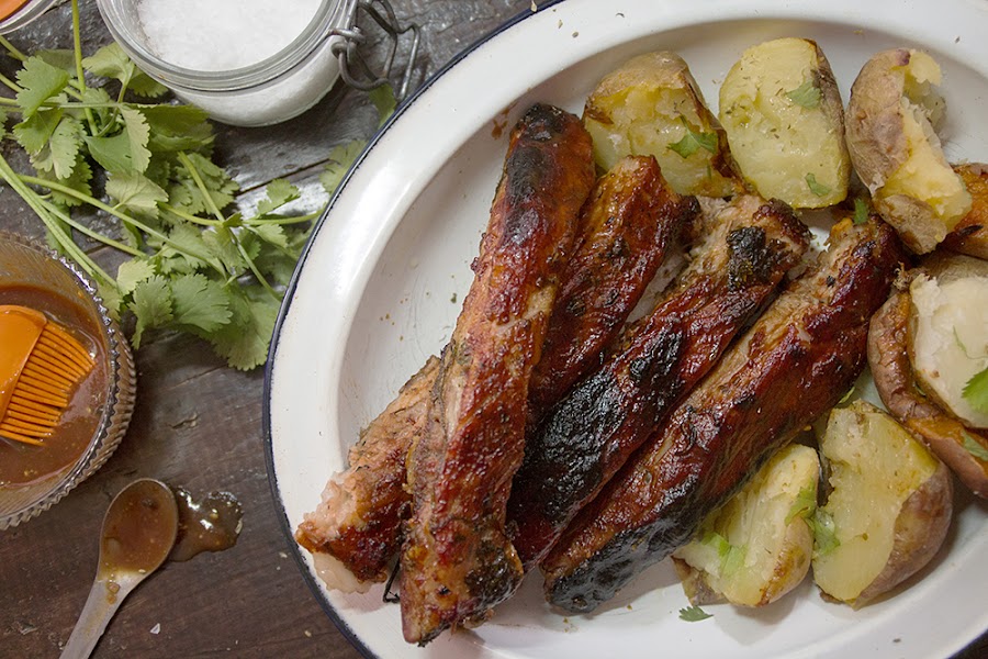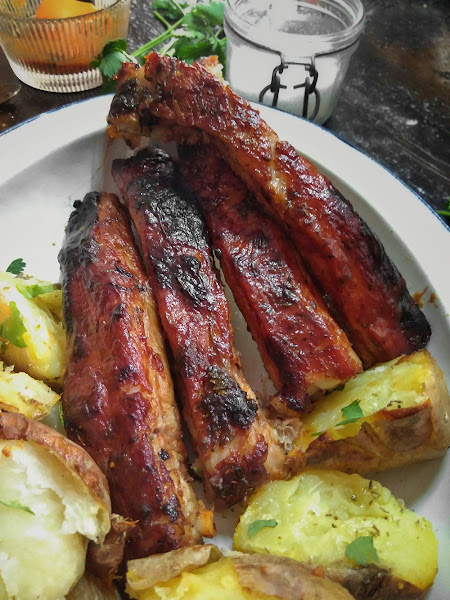 Al final mi madre hizo tantos platos en casa (todos más buenos que cualquiera que vaya hacer yo en mi vida) que nos fue imposible ir a visitar la parrilla de mis recuerdos, así que me quedé con cierta gula de costillas y después de unos días de bondad, decidí darme el gustazo y hacer mis propias costillas en casa, un poco diferentes pero que me quitaron el mono y me retornaron a mi juventud... sólo me falto ponerme a tirar migas de pan a mi hermano, pero eso ya puedo hacerlo cualquier otro día.