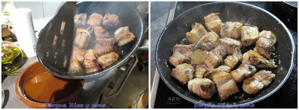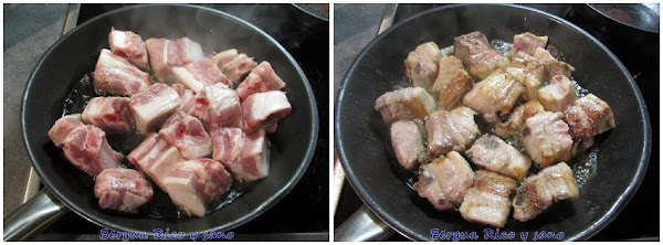 2. Calentamos un chorretón de aceite de oliva en la sartén y freímos las costillejas, unos 2-3 minutos por cada lado para que se doren.