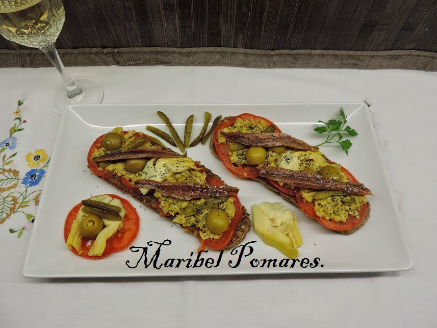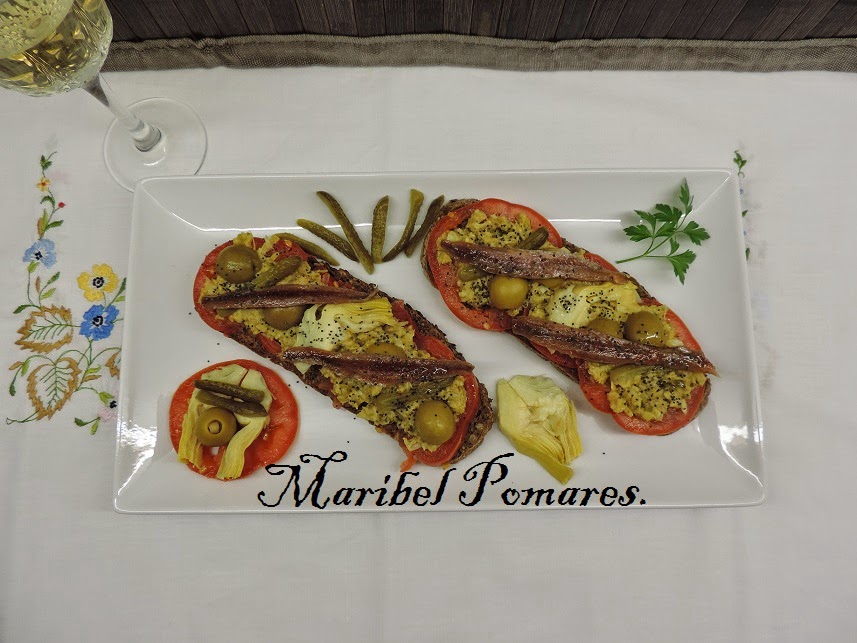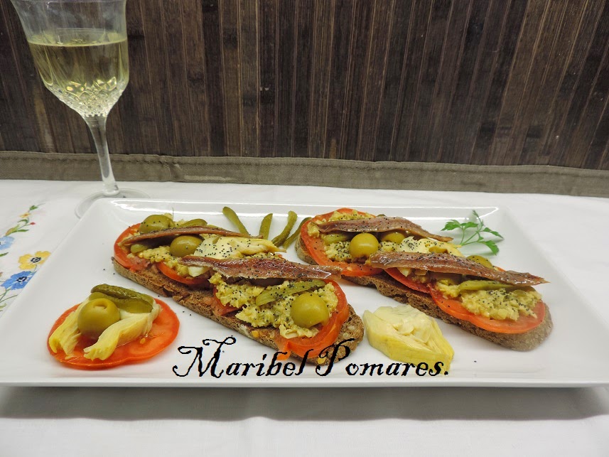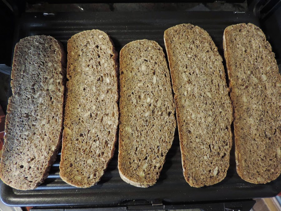 Rebanadas de pan yo he usado de trigo y centeno con semillas. Pincha aquí para ver como se hace el pan.