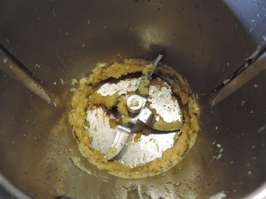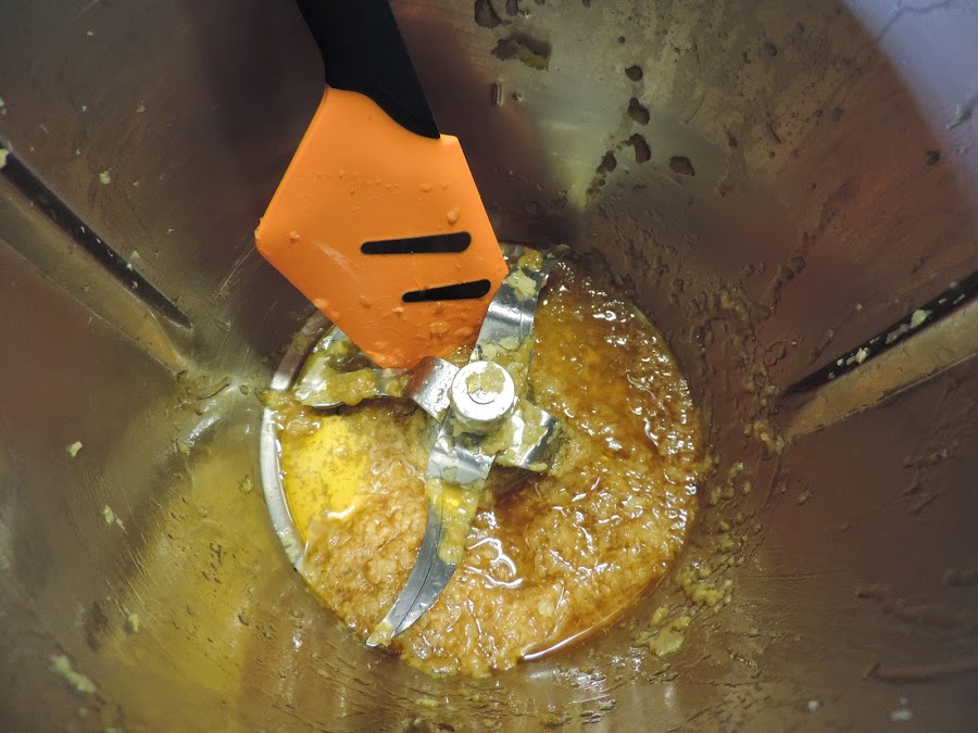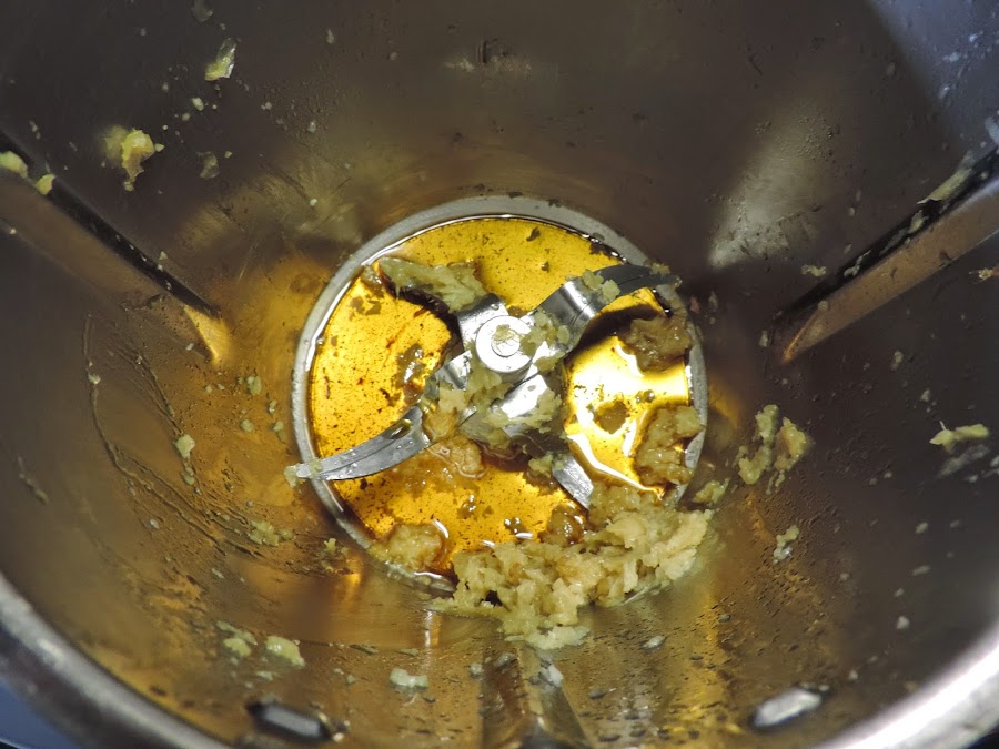 Elaboración:Poner el aceite de oliva y los ajos en el vaso del thermomix, programamos 12 minutos, 90º, velocidad cuchara, giro a la izquierda. Dejamos reposar para que baje de temperatura.
