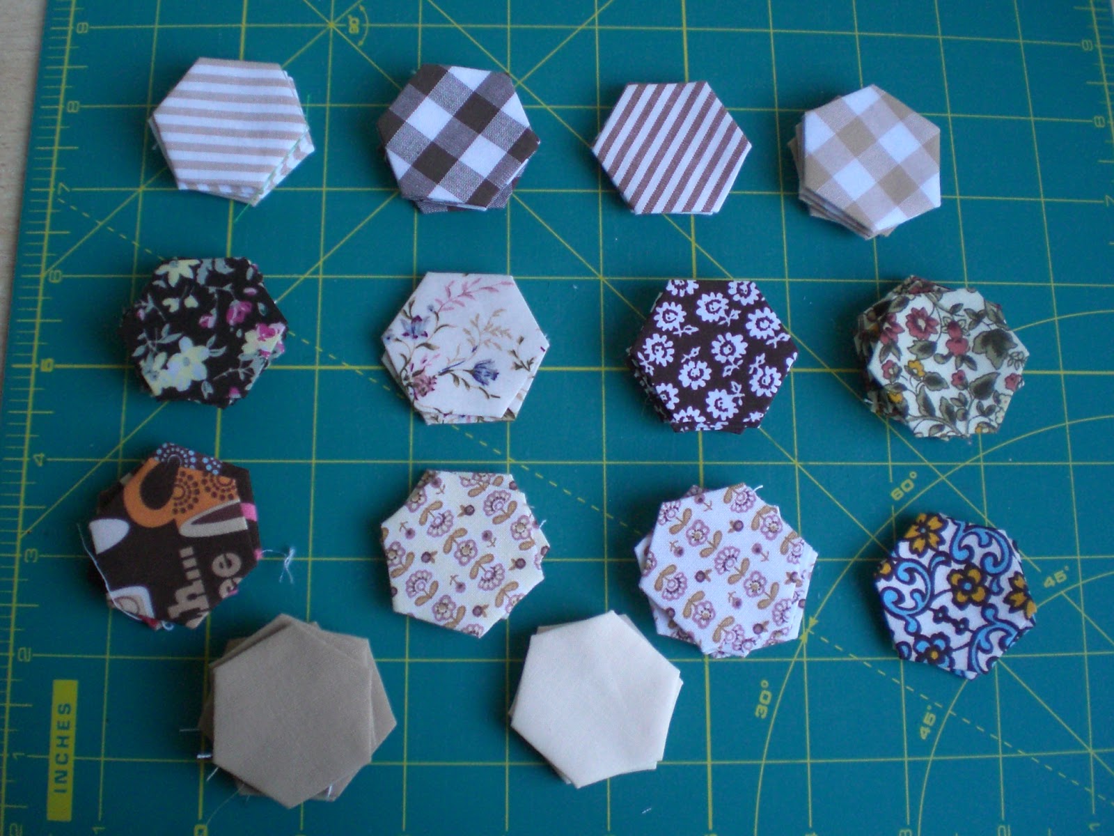 Y también he preparado más hexágonos marrones para hacer dos bloques, pero aún necesito unos cuantos más que ya tengo preparados para coser.