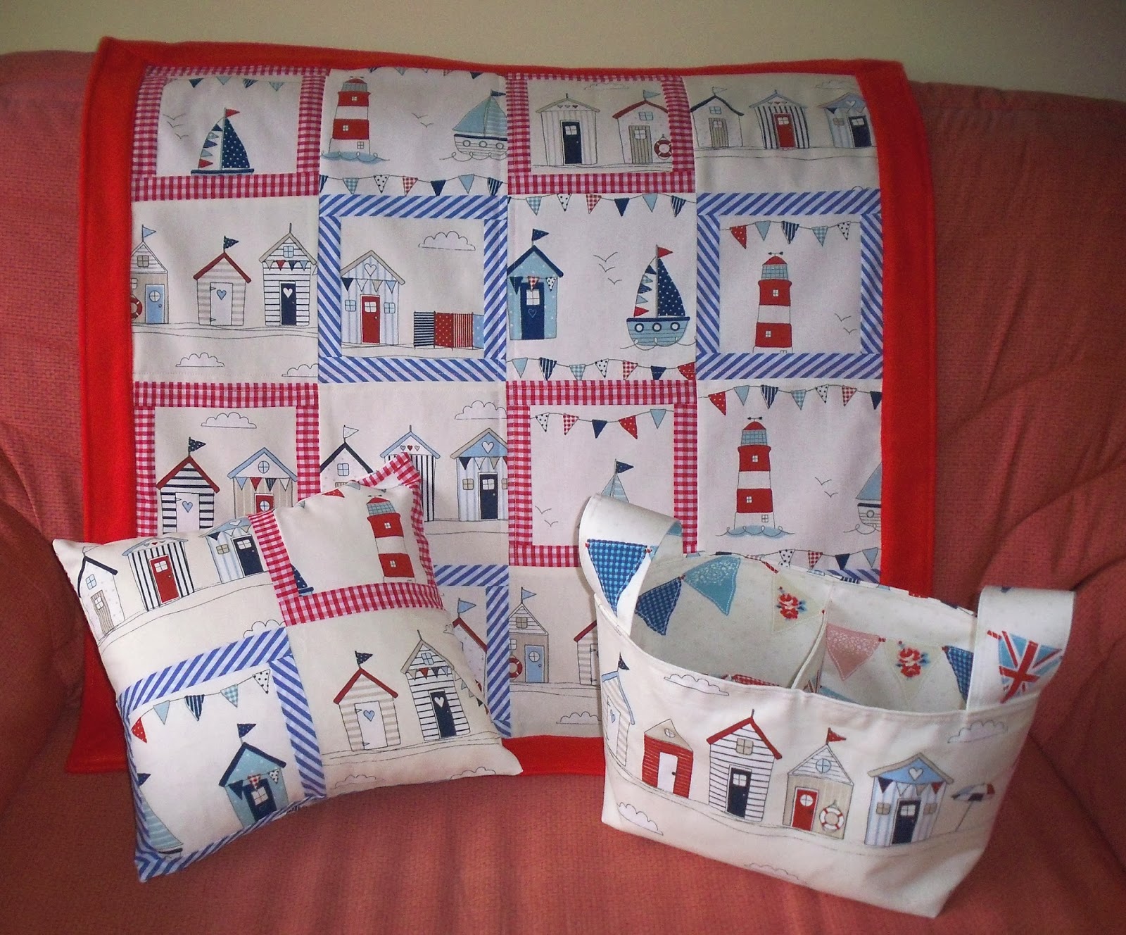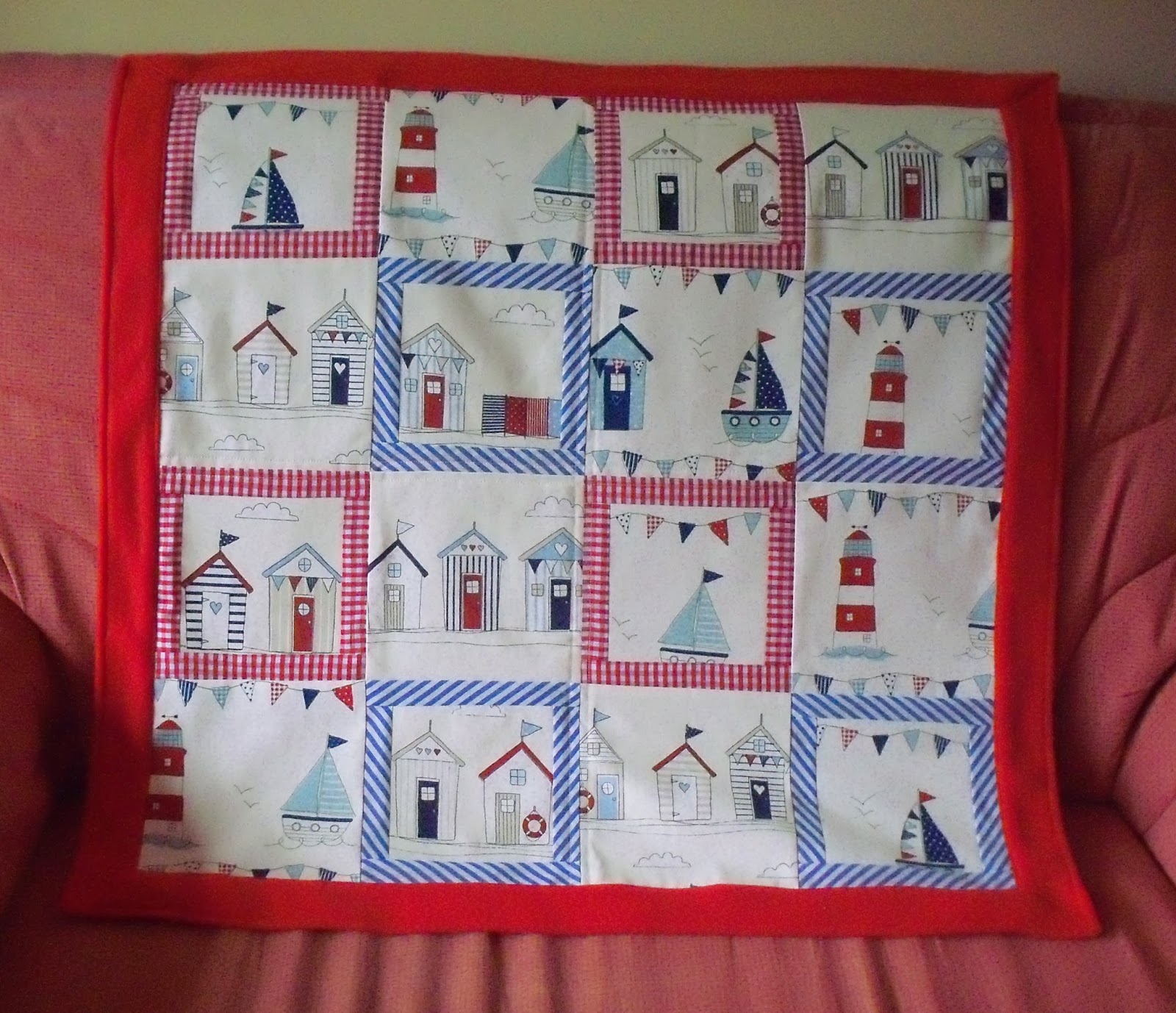 En este post os había enseñado las telas que estaba utilizando. Son unas telas de decoración de la tienda Terrys Fabrics con motivos marineros, cada vez que las miro más me gustan, tengo que pensar en utilizar los restos en algo ;)